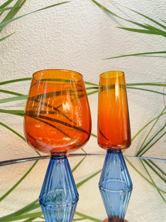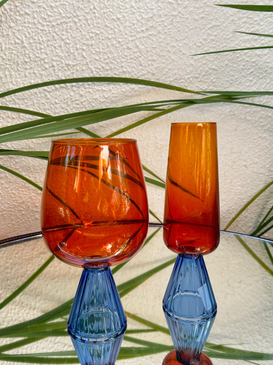TAÇA DE VIDRO PARA ESPUMANTE BRISTOL LARANJA E AZUL 270ML