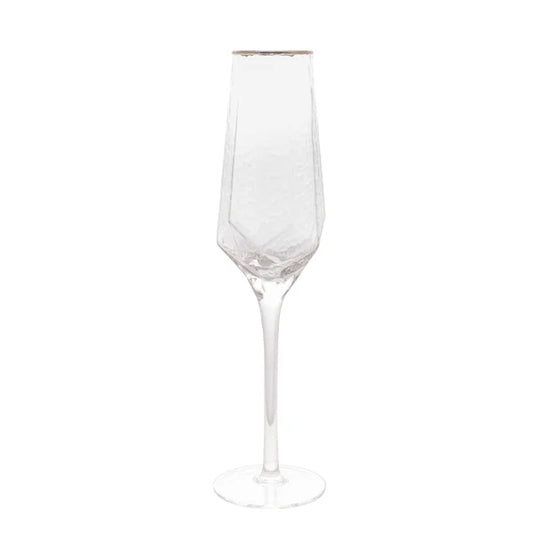 TAÇA KEY WEST DE VIDRO PARA ESPUMANTE TRANSPARENTE E AZUL 420ML