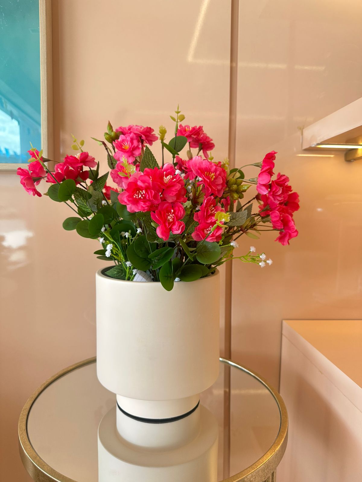 Cada detalhe do arranjo foi pensado para encantar: das pétalas realistas ao vaso que completa a composição com elegância. Uma peça que harmoniza perfeitamente com diversos estilos de decoração, do clássico ao moderno, adicionando charme sem esforço.