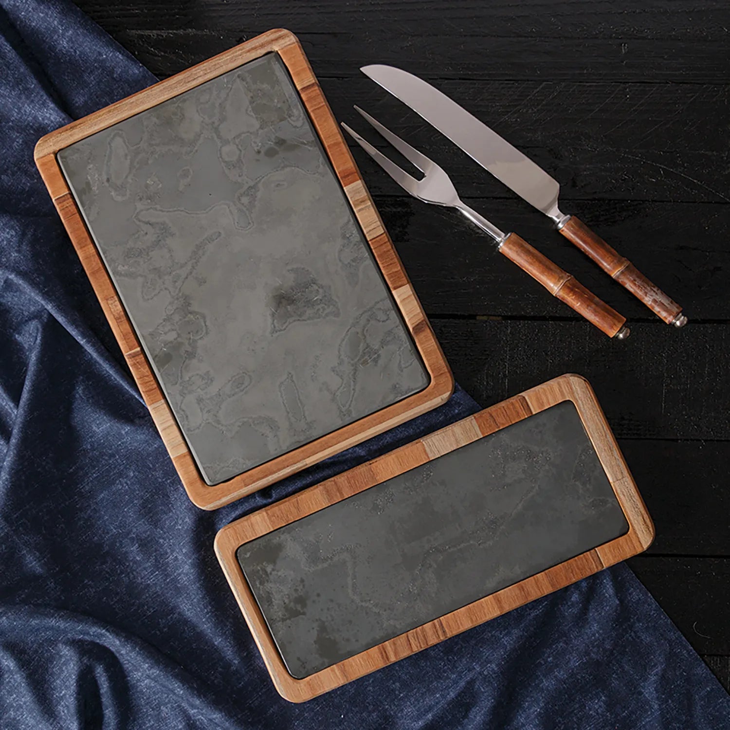 Conjunto 2 Peças Faca e Garfo para Assado de Aço Inox com Cabo de Bambu