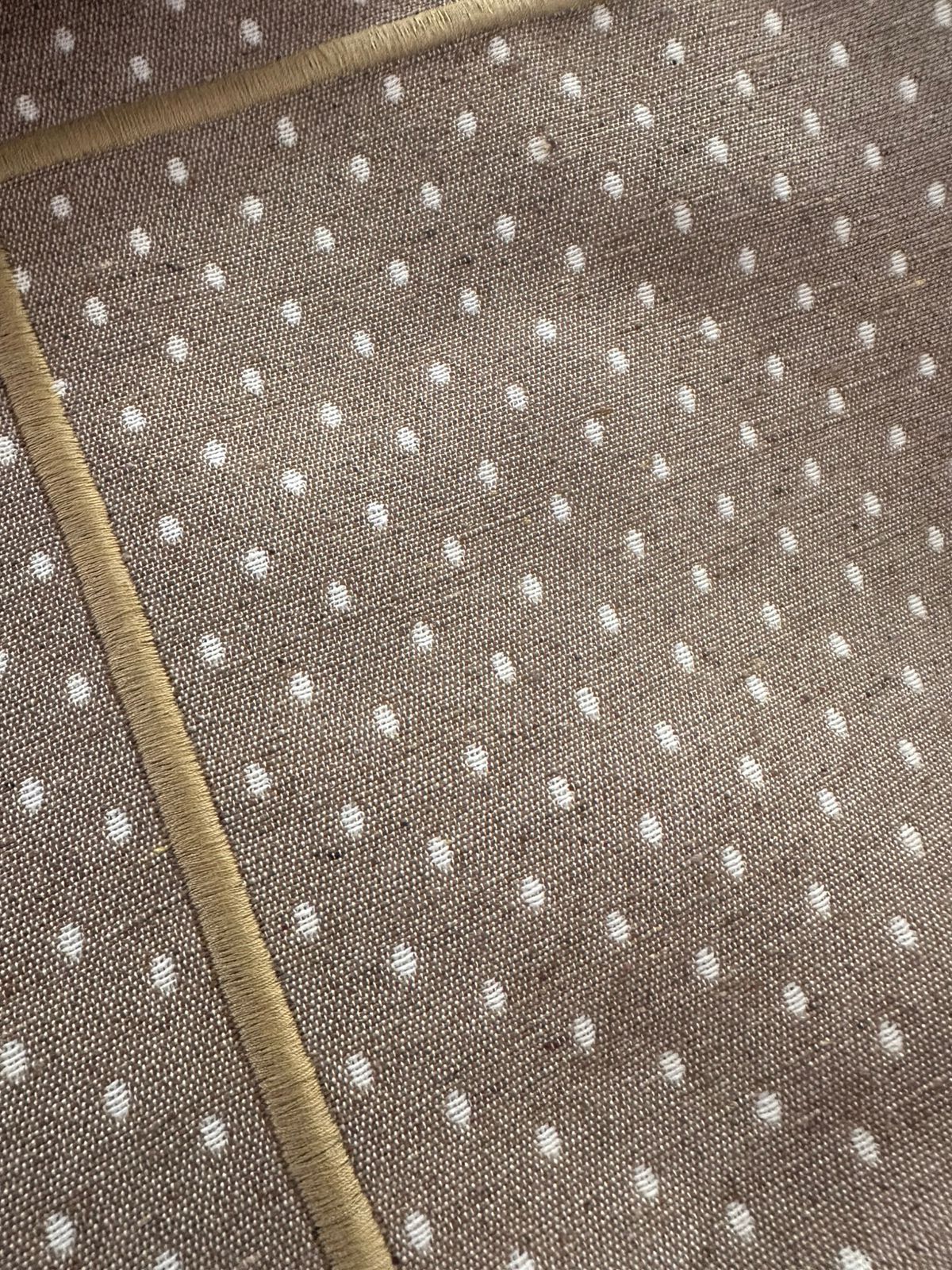 O Lugar Americano Poá Caqui une o charme atemporal da estampa de poá com a neutralidade sofisticada do tom caqui. Ideal para quem busca uma decoração de mesa delicada, funcional e cheia de estilo. Feito com materiais de alta qualidade, é perfeito para o uso diário ou para receber com bom gosto.