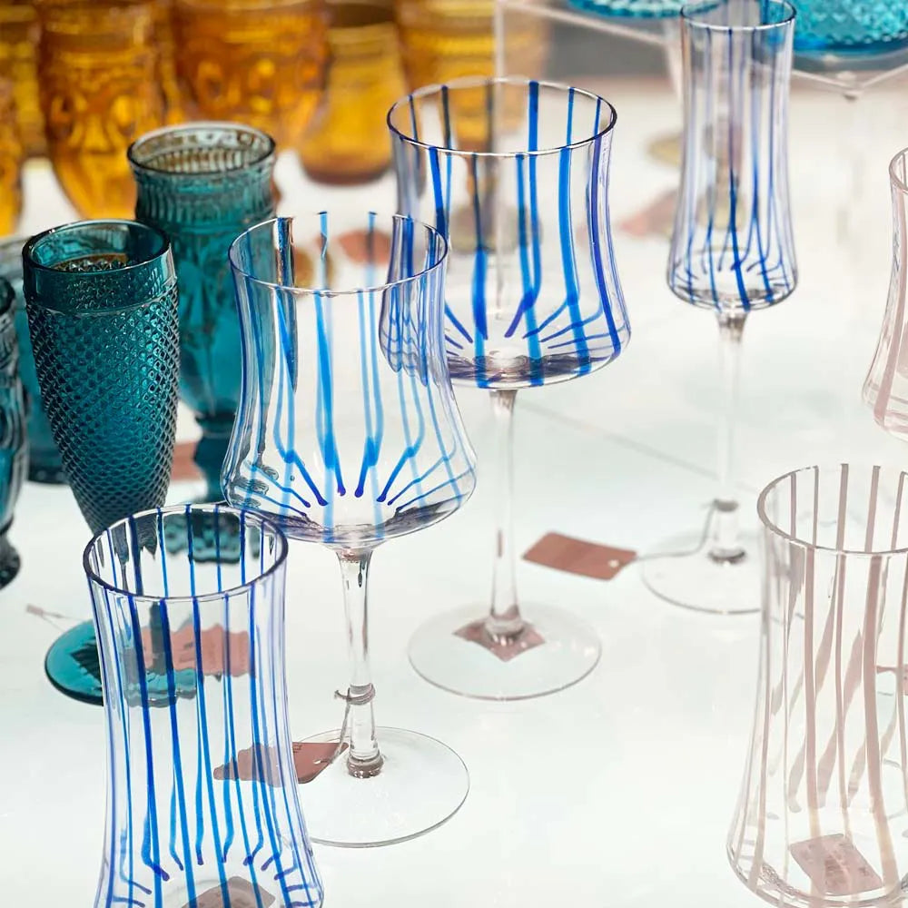 TAÇA KEY WEST DE VIDRO PARA ESPUMANTE TRANSPARENTE E AZUL 420ML