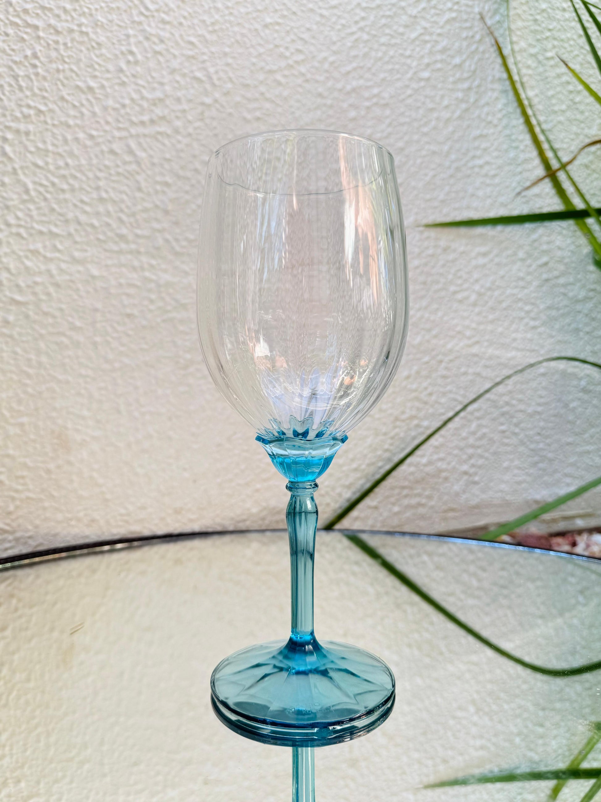Versátil e elegante com haste e base texturizadas em azul translúcido. Perfeitas para compor uma mesa refinada com um toque de cor.