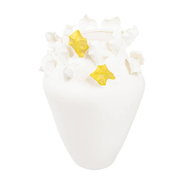 Transforme seu ambiente com a sofisticação do vaso em cerâmica branca com detalhes dourados. Com dimensões de 33x23cm, este item é perfeito para complementar sua decoração com um toque moderno e elegante, destacando-se em qualquer espaço, seja na sala, escritório ou hall de entrada.